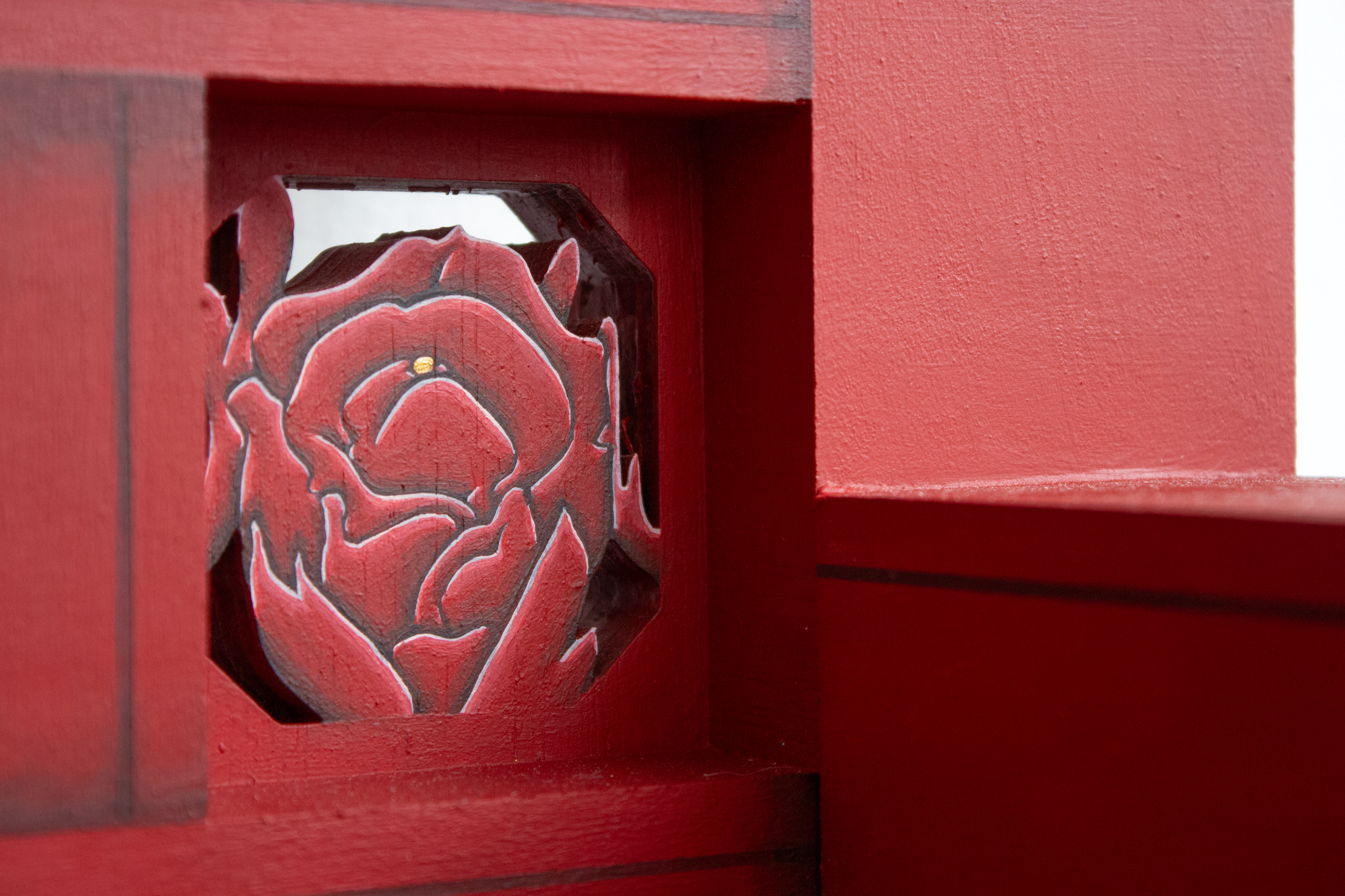 Acrylic paint, poplar wood, two-part epoxy, wood filler, ABS 3D printing filament, and liquid gold leaf